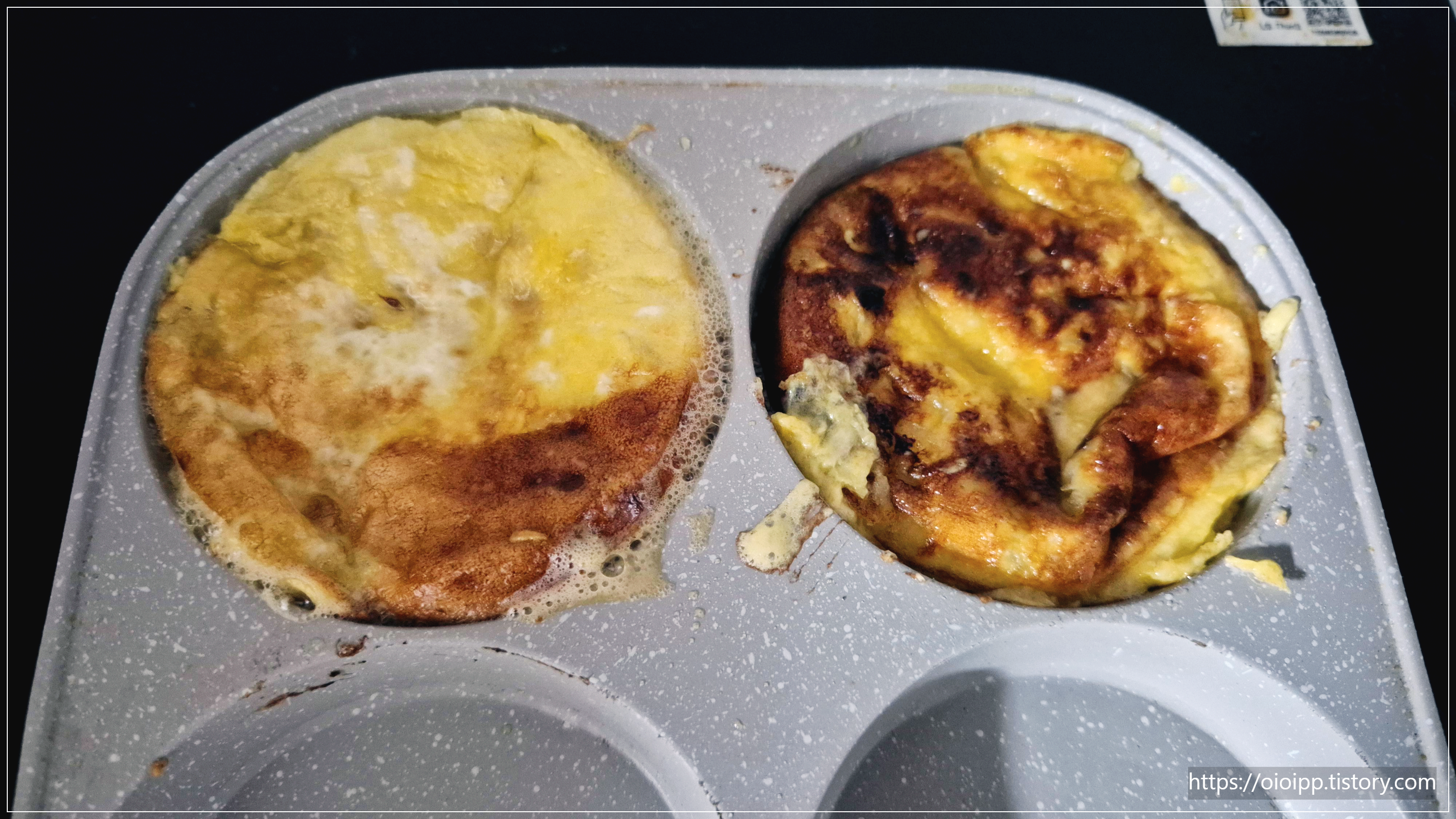 계란1개, 바나나 반개는 4구 후라이펜에서 알맞는 양은 2구에요.
