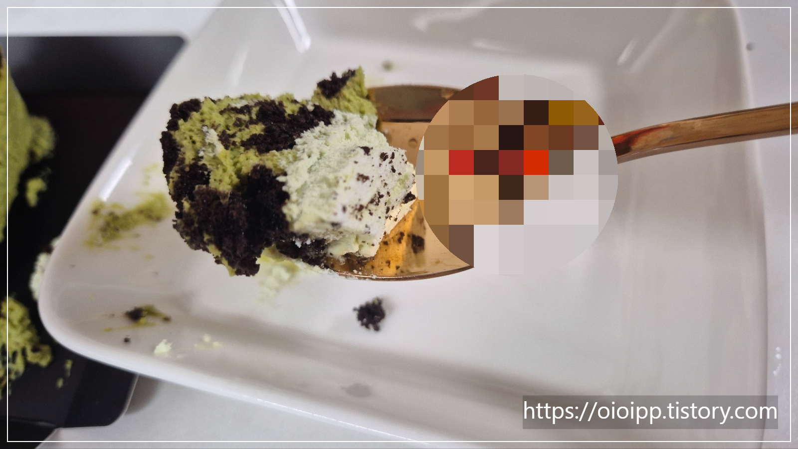 오레오는 3/4 토핑 돼 있고 1/4는 잘게 부수어서 케이크 위에 토핑한 것 같아요. 한입 먹었을 때 입안 가득 부드러운 단맛의 말차맛이 느껴졌어요. 투썸플레이스 말차 아이스박스 개인적인 입맛은 ★ ★ ★ ★ 솔직히 맛은 무난했는데요.
